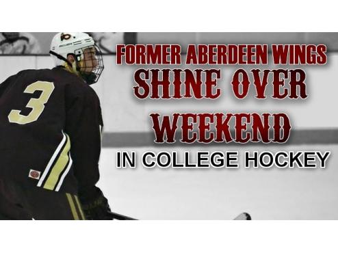 Former Aberdeen Wings shined over the weekend in collegiate hockey. #3 Sam Coburn (F-Concordia Moorhead), #35 Zach Nagelvoort (G-Michigan), and #13 Cory Ward (F-Bemidji State) helped contribute to their teams over the weekend.
